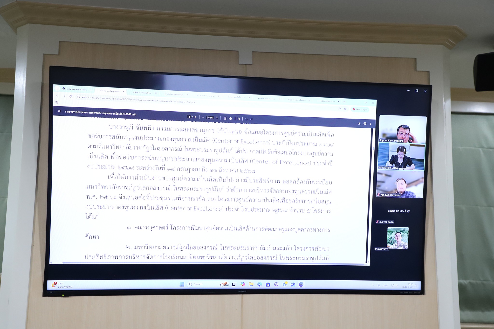 📅 วันพุธที่ 17 ธันวาคม พ.ศ. 2568 รศ.ดร.อรสา จรูญธรรม รองอธิการบดี ทำหน้าที่ประธานการประชุมคณะกรรมการกองทุนศูนย์ความเป็นเลิศ ครั้งที่ 6/2568 เพื่อพิจารณาและหารือวาระสำคัญที่เกี่ยวข้องกับการบริหารจัดการกองทุนและการขับเคลื่อนการดำเนินงานของศูนย์ความเป็นเลิศให้เป็นไปตามเป้าหมายและทิศทางที่กำหนด 🎯