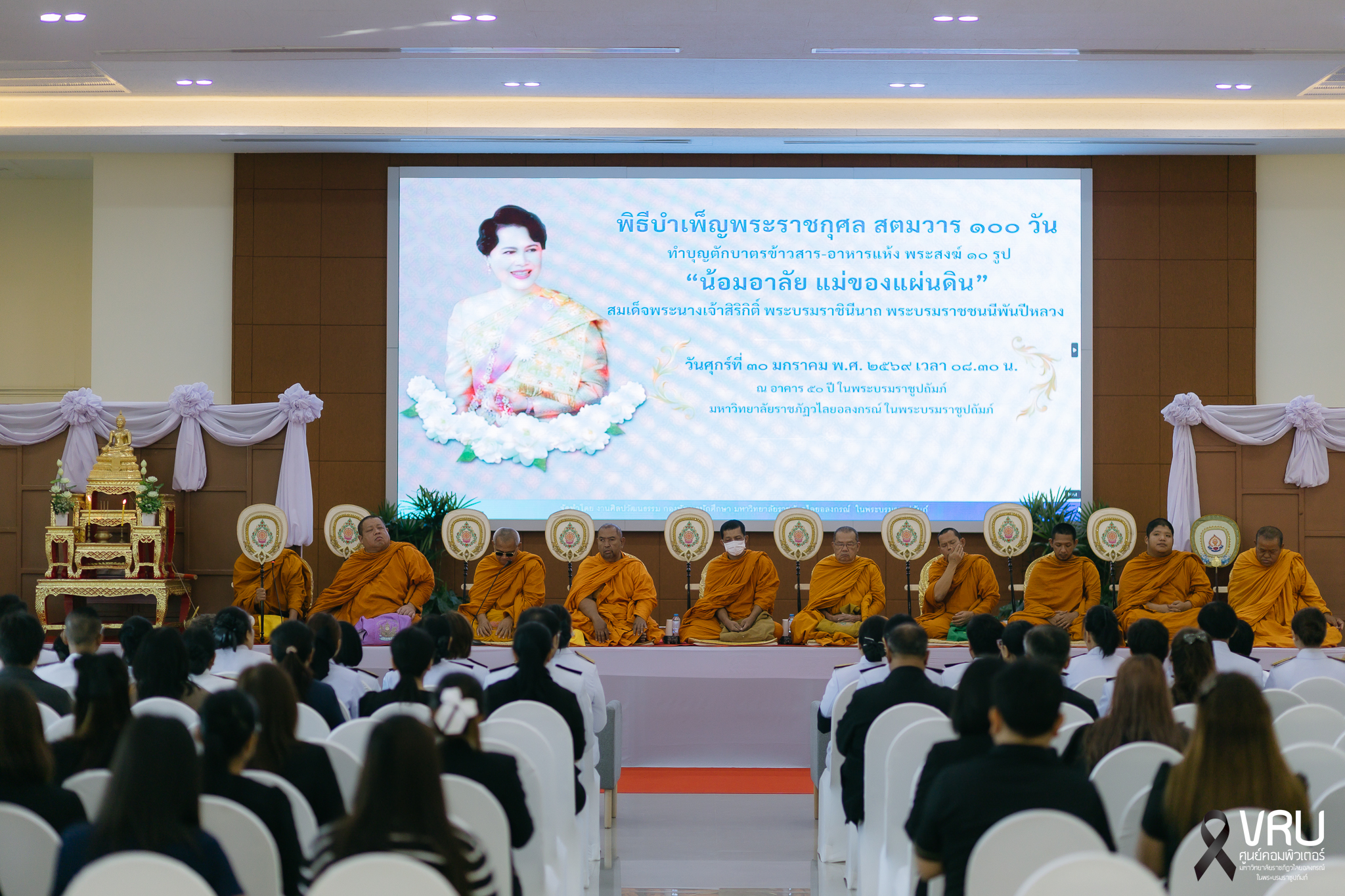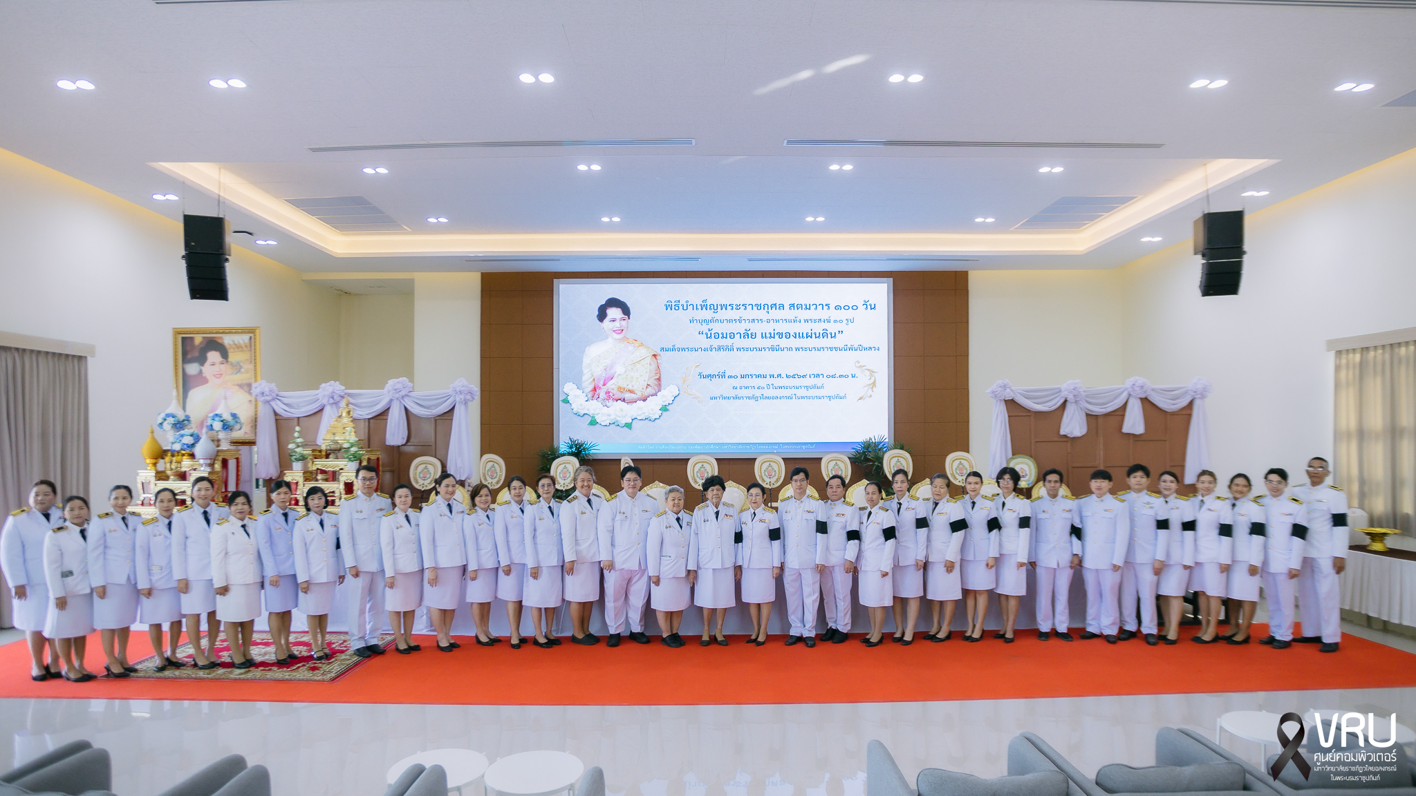📅 วันศุกร์ที่ 30 มกราคม พ.ศ. 2569 เวลา 08.30 น. รศ.ดร.สมบัติ คชสิทธิ์ อธิการบดี พร้อมด้วยผู้บริหาร อาจารย์ และบุคลากร เข้าร่วมพิธีบำเพ็ญพระราชกุศล สตมวาร 100 วัน และพิธีทำบุญตักบาตรข้าวสาร–อาหารแห้ง ภายใต้กิจกรรม “น้อมอาลัย แม่ของแผ่นดิน” เพื่อถวายเป็นพระราชกุศลแด่ สมเด็จพระนางเจ้าสิริกิติ์ พระบรมราชินีนาถ พระบรมราชชนนีพันปีหลวง ด้วยความสำนึกในพระมหากรุณาธิคุณอย่างหาที่สุดมิได้ 🙏
