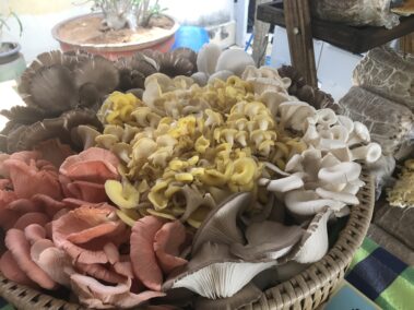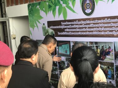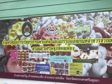 พร้อมกันนี้ได้ไปตรวจเยี่ยมชุมชน หมู่ที่ 3 บ้านคลองทราย ตำบลคลองจิก อำเภอบางประอิน จังหวัดพระนครศรีอยุธยา ซึ่งมหาวิทยาลัยราชภัฏพระนครศรีอยุธยาเข้าไปดำเนินโครงการ อาทิเช่น โครงการพัฒนาและยกระดับผลิตภัณฑ์อาหารจากเห็ดสู่เชิงพาณิชย์ การพัฒนาตำรับอาหารเพื่อสุขภาพจากเห็ด และการฝึกอบรมเทคนิคพื้นฐานด้านจุลชีวิทยา เทคนิคการถ่ายเชื้อเห็ดแบบปลอดเชื้อให้กับชุมชน อันเป็นการส่งเสริมการยกระดับและมาตรฐานผลิตภัณฑ์ชุมชนให้เป็นชุมชนต้นแบบในการพัฒนาแปรรูปเห็ดนางฟ้าแบบครบวงจรเพื่อเพิ่มมูลค่าให้กับผลิตภัณฑ์ เกิดเป็นผลิตภัณฑ์ใหม่ รวม 10 ผลิตภัณฑ์ อาทิ เห็ดเบญจรงค์ เห็ดอบแห้งพลังงานแสงอาทิตย์ และขนมเปี๊ยะใส้เห็ดเบญจรงค์ ที่สามารถสร้างรายได้ให้กับกลุ่มสมาชิกวิสาหกิจ และชาวบ้านชุมชนบ้านคลองทราย ได้มากกว่าการจำหน่ายเพียงก้อนเชื้อเห็ดและดอกเห็ด