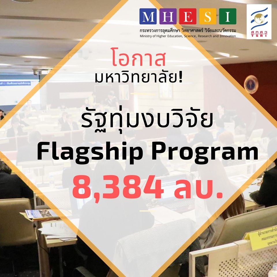 1) งบประมาณสําหรับโครงการ Flagship ที่เข้ากองทุนส่งเสริมวิทยาศาสตร์ วิจัยและนวัตกรรม ภายใต้การดำเนินงานของ สกสว. จํานวน 8,384 ล้านบาท