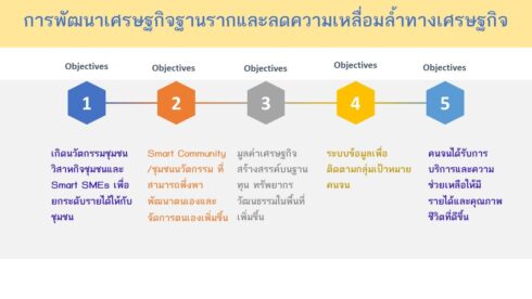 - O1 : นวัตกรรมชุมชน วิสาหกิจชุมชน และ Smart SMEs เพื่อยกระดับรายได้ให้กับชุมชน ปีละ 20 นวัตกรรม