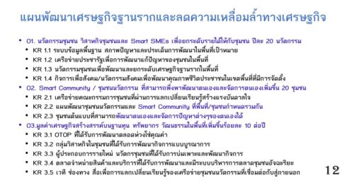 KR 2.3 : ชุมชนต้นแบบที่สามารถพัฒนาตนเองและจัดการปัญหาต่างๆ ของตนเองได้ - O3 : มูลค่าเศรษฐกิจสร้างสรรค์บนฐานทุน ทรัพยากร วัฒนธรรมในพื้นที่เพิ่มขึ้นร้อยละ 10 ต่อปี