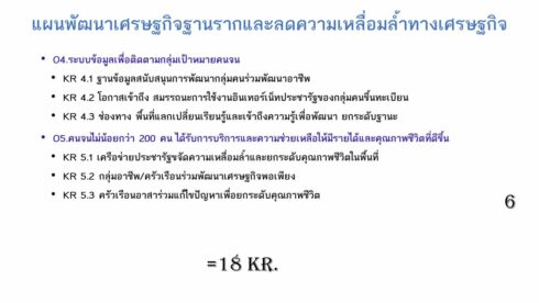 - KR 2.5 สถาบันพัฒนาอาชีพ ผู้นำท้องถิ่น และบ่มเพาะผู้ประกอบการใหม่ นวัตกรรมชุมชน