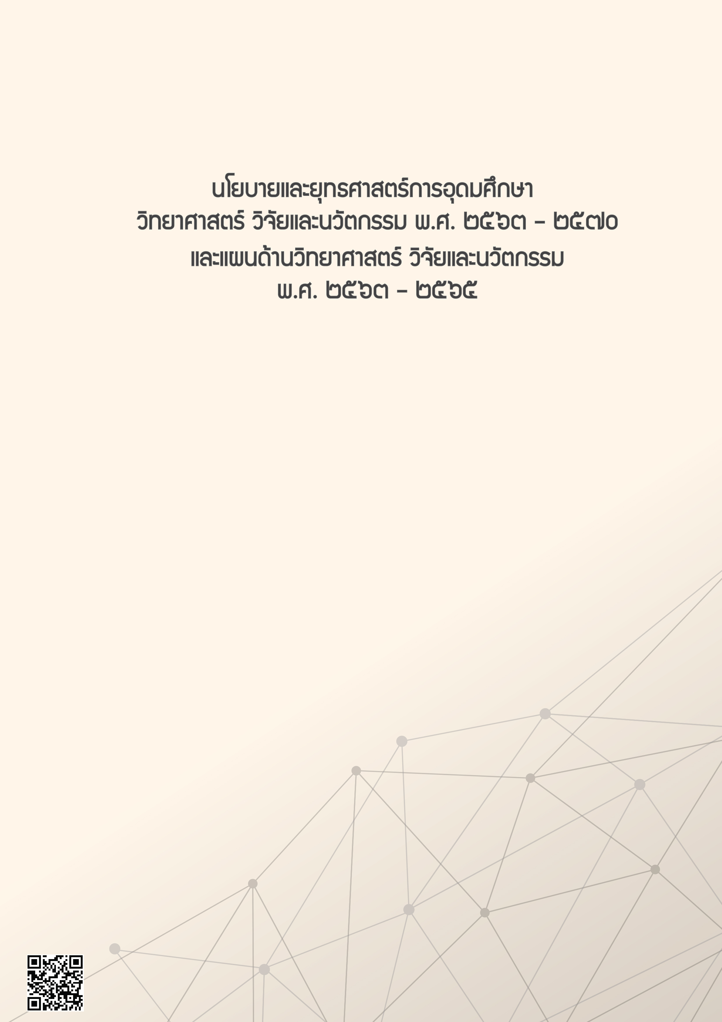 🔊 [ FullText : 4 Platforms 16 Programs พร้อม OKRs ] ท่านสามารถดาวน์โหลดไฟล์ “นโยบายและยุทธศาสต์การอุดมศึกษา วิทยาศาสตร์ วิจัยและนวัตกรรม พ.ศ.2563 – 2570 และแผนด้านวิทยาศาสตร์ วิจัยและนวัตกรรม พ.ศ.2563 – 2565 ” ได้ที่ www.tsri.or.th นโยบายและยุทธศาสต์การอุดมศึกษา วิทยาศาสตร์ วิจัยและนวัตกรรม พ.ศ.2563 - 2570 และแผนด้านวิทยาศาสตร์ วิจัยและนวัตกรรม พ.ศ.2563 - 2565สำนักงานคณะกรรมการส่งเสริมวิทยาศาสตร์วิจัยและนวัตกรรม (สกสว.) จำนวนผู้เข้าชม : 115 Share this post Share on FacebookShare on Facebook TweetShare on Twitter Author: แทนคุณ วงค์ษร นักวิชาการศึกษาชำนาญการ แทนคุณ วงค์ษร ข่าวสารและกิจกรรมที่ผ่านมาแผนปฏิบัติราชการรายปี พ.ศ. 2567 กระทรวงการอุดมศึกษา วิทยาศาสตร์ วิจัยและนวัตกรรมJanuary 3, 2024แผนปฏิบัติราชการ ระยะ 5 ปี (พ.ศ. 2566-2570) แผนปฏิบัติราชการระยะ 5 ปี (พ.ศ. 2566-2570) กระทรวงการอุดมศึกษา วิทยาศาสตร์ วิจัยและนวัตกรรมMarch 28, 2023แผนด้านการอุดมศึกษา เพื่อผลิตและพัฒนากำลังคนของประเทศไทย พ.ศ. 2564 – 2570 ฉบับปรับปรุง พ.ศ. 2566 – 2570March 28, 2023ความต้องการ/ความคาดหวัง กลุ่มลูกค้าระดับมหาวิทยาลัย 2565January 27, 2023