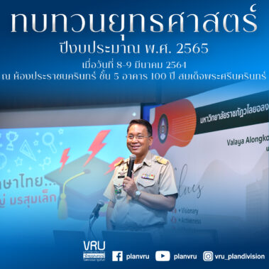 โดยท่านอธิการบดี ผู้ช่วยศาสตราจารย์ ดร.สุพจน์ ทรายแก้ว เป็นประธานในการเปิดสัมมนาฯ และเป็นประธานในการทบทวนและจัดทำยุทธศาสตร์ของมหาวิทยาลัยราชภัฏวไลยอลงกรณ์ ในพระบรมราชูปถัมภ์ โดยแผนกลยุทธ์มหาวิทยาลัยราชภัฏวไลยอลงกรณ์ ในพระบรมราชูปถัมภ์ พ.ศ. 2560-2564 ได้ดำเนินงานครบรอบการปฏิบัติงานในปีงบประมาณ พ.ศ. 2564 เพื่อให้เกิดความต่อเนื่อง และเตรียมการสำหรับเป็นแนวทางในการจัดทำแผนปฏิบัติการ ประจำปีงบประมาณ พ.ศ. 2565 นี้ จึงเป็นภาระกิจที่สำคัญอย่างยิ่งของมหาวิทยาลัยทุกคณะ หน่วยง่านที่ต้องระดมความคิด วิเคราะห์ผลการดำเนินงาน และสถานการณ์อุดมศึกษาทั้งไทย และต่างชาติ เพื่อร่วมกันวางเป้าหมาย จุดมุ่งหมายเดียวกัน ส่งผลให้ทิศทางการพัฒนามหาวิทยาลัยสู่ความเป็นเลิศ เป็นมหาวิทยาลัยแห่งการพัฒนาท้องถิ่นอย่างแท้จริง