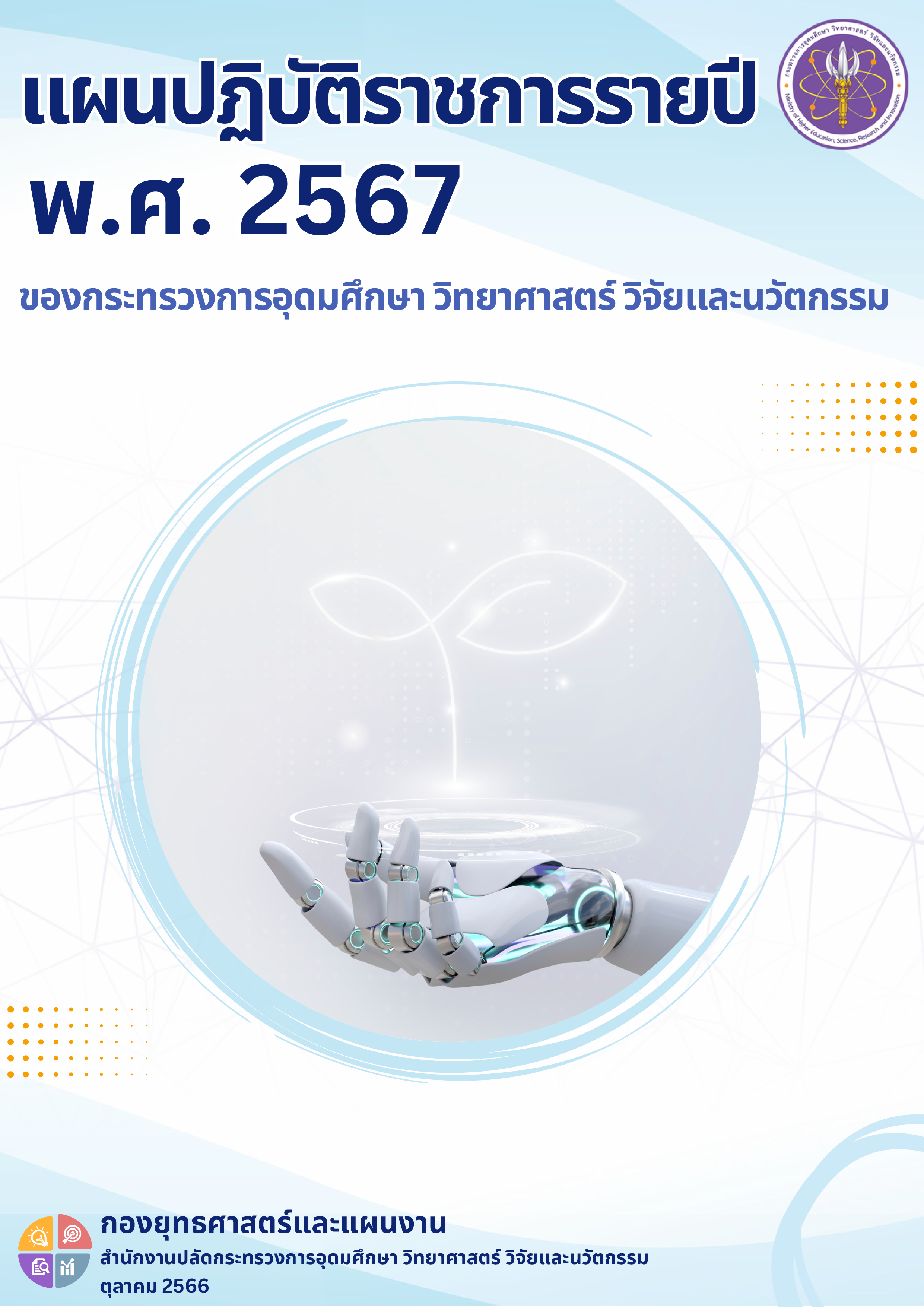 แผนปฏิบัติราชการ ระยะ 5 ปี (พ.ศ. 2566-2570) แผนปฏิบัติราชการระยะ 5 ปี (พ.ศ. 2566-2570) กระทรวงการอุดมศึกษา วิทยาศาสตร์ วิจัยและนวัตกรรมMarch 28, 2023